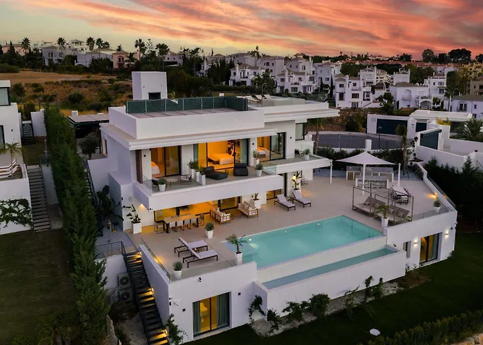 Situé à environ 2 km du Parc d'aventure Selwo, Villa Resina Luxury Gym Cinema Sea Views Estepona propose un casino pour vos loisirs. Cette villa d'Estepona offre une piscine.